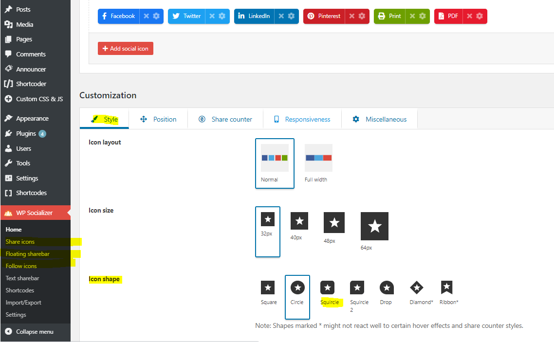 In every feature settings page under the style tab you can find the option to change the icon style.